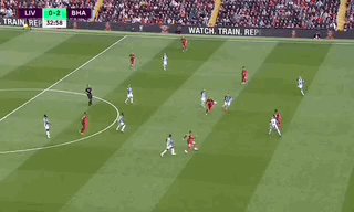 第18分钟,布莱顿前场抢断,经过一些列配后后从左路打穿利物浦防线,特罗萨尔禁区内左脚劲射梅开二度,2比0!